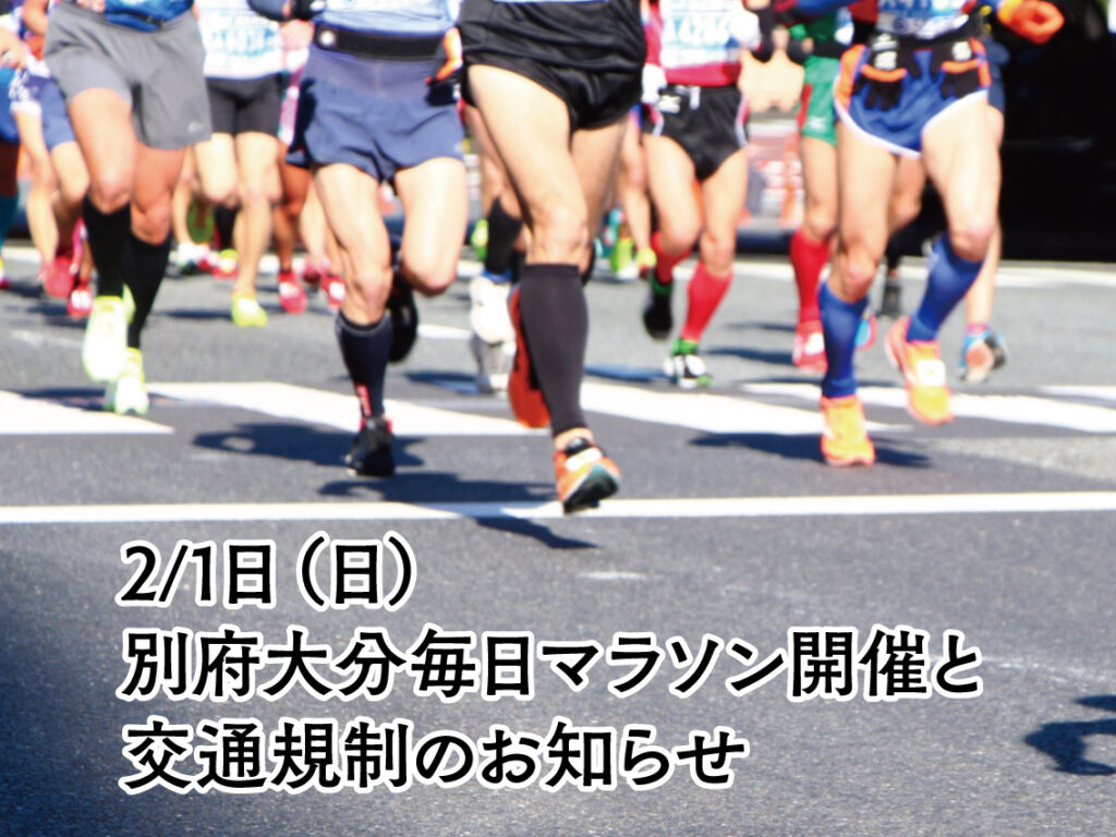 いつもととのい宿春燈庵のブログをご覧いただき、誠にありがとうございます。さて、2月1日(日)に毎年多くのランナーと応援の方で賑わう「別府大分毎日マラソン」が、別府市・大分市内にて開催されます。世界トップレベルの選手たちの力走を間近でご覧いただける貴重な大会ですので、お時間の許す方は、ぜひ沿道での観戦もお楽しみください。街全体が熱気に包まれる、特別な一日となります。大会当日は、コース周辺の道路において交通規制や通行止め、渋滞が予想されております。そのため、当宿へお越しのお客様、またチェックイン・チェックアウトをご予定のお客様におかれましては、お時間に余裕をもってご移動いただきますようお願い申し上げます。交通規制の詳細や最新情報につきましては、大会公式ホームページや警察・自治体からの案内をご確認ください。ご不便をおかけする点もございますが、別府・大分が一体となって盛り上がる大きなイベントでもございます。どうぞご理解とご協力のほど、よろしくお願い申し上げます。皆さまのお越しを、スタッフ一同心よりお待ちしております。大会公式ホームページhttps://www.betsudai.com/交通規制のお知らせ(pdf)https://www.betsudai.com/wp-content/themes/betsudai/pdf/74/kou.pdf 安心してお過ごしいただけるよう徹底したウイルス感染予防対策を行い↓ お客さまをお迎えしております。↓ ご宿泊プラン・webでのご予約はこちら 【お電話でのお問い合わせ時間】 8:30〜20:00 0977-76-5265 お問い合わせはこちら